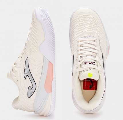 Dámská tenisová obuv Joma je navržena pro maximální výkon na profesionální úrovni. Tento model byl testován profesionálními hráči, kteří ocenili jeho vysoký výkon a špičkové technologie. Ideální volba pro hráče, kteří hledají lehkou, odolnou a stabilní obuv. Svršek je vyroben z lehké a prodyšné síťoviny s úpravou Jacquard, která je doplněna perforacemi VTS pro ventilaci a odvod potu. Díky systému SPORTECH, který tepelně zatavuje úpravy bez přidání hmotnosti, se obuv dokonale přizpůsobí noze. Pro větší odolnost je oblast špičky chráněna pryžovou výztuží Rubber PROTECTION, která prodlužuje životnost obuvi. DUAL REACTIVE mezipodešev využívá dvouhustotní phylon, který kombinuje tlumení, pružnost a pohodlí. Díky STABILIS prvku v oblasti střední části chodidla poskytuje lepší stabilitu a pomáhá předcházet zraněním. Podrážka DURABILITY s hroty nebo designem na antuku poskytuje potřebnou přilnavost na kluzkém povrchu, odvádí písek ze vzoru podrážky a umožňuje plynulé klouzání na kurtu. Lehkost a prodyšnost: Síťovina s Jacquard úpravou a perforacemi VTS.Přizpůsobení a ochrana: Systém SPORTECH a pryžová ochrana Rubber PROTECTION.Tlumení a stabilita: Mezipodešev DUAL REACTIVE a STABILIS prvek pro prevenci zranění.Odolná podrážka: DURABILITY podešev zajišťuje přilnavost a snadné klouzání na antuce.