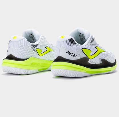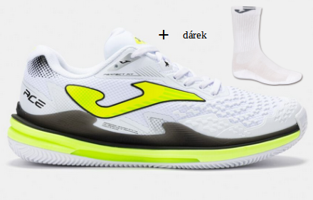 Pánská tenisová obuv Joma Ace Man. Španělská značka Joma vylepšila legendární model Ace, takže je ještě stabilnější při frenetických tenisových pohybech. Svršek ze síťoviny, na níž byla použita elegantní, na míru šitá žakárová úprava zajišťující lehkost a prodyšnost. Tato poslední výhoda byla optimalizována pomocí technologie perforace VTS. Termotěsnicí systém JOMA SPORTECH zachovává fit a podpůrné vlastnosti, aniž by zvyšoval hmotnost obuvi. Pryžové zesílení v místech nejcitlivějších na oděr a nárazy. Tyto aplikace tvoří systém PROTECTION. Vylepšená mezipodešev. Konstrukce z phylonu, lehkého a pružného materiálu s vysokou schopností tlumit nárazy pro pohodlnou hru. Jedinečnost spočívá ve dvojitém stabilizačním systému. Na jedné straně je ve střední části umístěna karbonová destička CARBON STABILIZER, která zabraňuje případnému kroucení boty. Na druhé straně tuto výhodu posiluje dvojitý STABILIS snižující výskyt možných zranění v zatáčkách a při pohybu do stran. Gumová podrážka DURABILITY na antuku. Zajišťuje potřebnou přilnavost na kluzkém povrchu, protože vyhání písek z podrážky, ale umožňuje hladký skluz po dráze bez obtíží. Design VTS s prodyšnou síťovinou.Konstrukce SPORTECH s tepelně utěsněným systémem nastavení.konstrukce PROTECTION s gumovými výztuhami na strategických místech.Phylonová mezipodešev s technologií STABILIS a CARBON STABILIZER.Podešev z pryže DURABILITY.