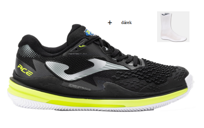 Pánská tenisová obuv Joma Ace Man. Španělská značka Joma vylepšila legendární model Ace, takže je ještě stabilnější při frenetických tenisových pohybech. Svršek ze síťoviny, na níž byla použita elegantní, na míru šitá žakárová úprava zajišťující lehkost a prodyšnost. Tato poslední výhoda byla optimalizována pomocí technologie perforace VTS. Termotěsnicí systém JOMA SPORTECH zachovává fit a podpůrné vlastnosti, aniž by zvyšoval hmotnost obuvi. Pryžové zesílení v místech nejcitlivějších na oděr a nárazy. Tyto aplikace tvoří systém PROTECTION. Vylepšená mezipodešev. Konstrukce z phylonu, lehkého a pružného materiálu s vysokou schopností tlumit nárazy pro pohodlnou hru. Jedinečnost spočívá ve dvojitém stabilizačním systému. Na jedné straně je ve střední části umístěna karbonová destička CARBON STABILIZER, která zabraňuje případnému kroucení boty. Na druhé straně tuto výhodu posiluje dvojitý STABILIS snižující výskyt možných zranění v zatáčkách a při pohybu do stran. Gumová podrážka DURABILITY na antuku. Zajišťuje potřebnou přilnavost na kluzkém povrchu, protože vyhání písek z podrážky, ale umožňuje hladký skluz po dráze bez obtíží. Design VTS s prodyšnou síťovinou.Konstrukce SPORTECH s tepelně utěsněným systémem nastavení.konstrukce PROTECTION s gumovými výztuhami na strategických místech.Phylonová mezipodešev s technologií STABILIS a CARBON STABILIZER.Podešev z pryže DURABILITY.