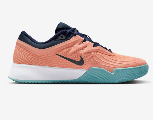 Bota Vapor Pro 3 dobře pruží a podporuje výbušné pohyby do stran a náběhy k síti, takže se můžeš soustředit jen na cíl. Díky pružnému tlumení Air Zoom a technologii Nike Claybreaker je bota lehčí než předchozí modely Vapor, takže se v ní na antuce dostaneš až k vítězství.Připravené na antuku Technologie Nike Claybreaker na antukových kurtech líp zabírá a zamezuje hromadění velkých nánosů antuky. Díky přilnavosti pod špičkou a ve střední části boty a širokému trakčnímu vzorku máš skluzy pod kontrolou. Pro design jsme použili trakční a tlakové mapy a analyzovali jsme místa s největším hromaděním antuky. Pak jsme model testovali na antukových kurtech v Evropě za různých povětrnostních podmínek (chlad, teplo, vlhko a sucho).Pružnost v přední části Přední část boty je pružnější, protože jsme zmenšili jednotku Air Zoom a umístili ji tam, kde chodidlo dostává nejvíc zabrat. Pořád se dočkáš citlivého tlumení v bodě odrazu v přední části, ale teď je bota ještě pružnější.Přilnavost na rychlé změny směru Podrážka je vyrobená z naší nové gumové směsi, která je lehčí než u dřívějších modelů Vapor. Umožňuje ti rychle brzdit, dobíhat a vracet se na střed a zaručuje pohotové reakce na kurtu.Vylepšený komfort Tvoji oblíbenou pěnu v mezipodešvi a podrážku se vzorem modelu Vapor 2 jsme nechali, ale vylepšili jsme obepnutí střední části chodidla a paty, takže bota líp drží nohu při náhlých změnách směru.Hlubší pružnost Podpůrný díl v přední části boty má hlubší pružný výřez, který zaručuje lepší flexibilitu.Vylepšený střih Díky pásku ve střední části můžeš tkaničky pevněji utáhnout, aby bota dobře padla, takže můžeš rychleji měnit směr.