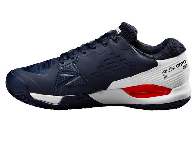 Wilson Rush Pro Ace Clay - kolekce 2024, nejvelkorysejší střih v oblíbené řadě Rush Pro, získává vysoké známky pro tenisty, kteří upřednostňují pohodlí na kurtu. Tato bota, zvýrazněná svým 2E střihem, aby se přizpůsobila širším chodidlům, také pomáhá stabilizovat nohu prostřednictvím 4D Support Chassis: symetrického šasi mezi patou a špičkou, které omezuje supinaci a pomáhá kontrolovat pohyby otáčení. Rush Pro Ace s vrstvou Sensifeel na svršku pro dodatečnou prodyšnost přináší přitažlivou směs pohodlí, stability a estetiky pro maximální jistotu při každém kroku. 4D Support Chassis omezuje supinaci a torzi a pomáhá kontrolovat pohyby čepu při nakládání pro silné zdvihy a vytváří vynikající stabilitu. Sensifeel má minimálně vrstvený svršek pro zvýšení pohodlí při zachování vynikající podpory. DF2 poskytuje tlumený pocit na kurtu a přináší kompromis mezi pohodlím a rychlým výkonem (DF2 = HT Drop 9 mm). Rubber Medial Drag Pad poskytuje zvýšenou odolnost a ochranu při tažení nohy. R-DST+ nabízí nejlepší kombinaci tlumení a odrazu pro dynamičtější výkon. Duralast se skládá z vysoce hutné, dokonale odolné pryžové směsi, která poskytuje odolnost proti oděru a maximální trakci na všech površích. Konstrukce Wide Fit (2E) pro širší chodidlo, pro pohodlnější nošení. Navrženo pro nejlepší výkon na antukových površích.
