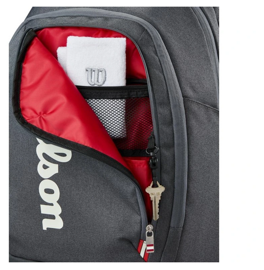 Batoh na rakety Wilson Tour Backpack je batoh, ve kterém přeneseš to nejnutnější, bez čeho se na kurtu neobejdeš. Batoh na rakety je perfektní volbou například pro cyklisty, kteří na trénink jezdí na kole a v šatně netráví příliš času.Více oddílů pro více věcí. Batoh na rakety Wilson Tour Backpack má větší objem a je rozdělený na dva hlavní oddíly. Díky tomu se ti do něj vejde třeba i náhradní raketa nebo tenisová obuv, oblečení a další tréninkové potřeby.Boty usušíš v oddílu s odvětráváním. Batoh na rakety má oddíl na boty s odvětráváním. Díky tomu si zašpiněnou a zpocenou obuv uklidíš do samostatné kapsy a oblečení zůstane čisté. Proudící vzduch navíc usuší boty a ty tak nebudou po vytažení zapáchat.