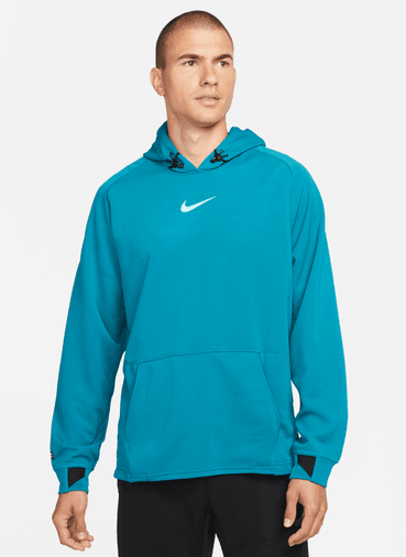 HŘEJIVÉ A PRODYŠNÉ POHODLÍ.Flísová mikina Nike Pro s kapucí vyvažuje hřejivost svou prodyšností, aby ti v ní bylo tak akorát, když cvičíš nebo soutěžíš v chladnějších podmínkách. Inovativní kapsa je navržená tak, aby ti uvolnila ruce, protože v ní budou tvoje drobnosti v bezpečí i během náročných aktivit. Odborníci Nike navrhli pleteninový design se střídajícími se proužky extrémně jemného a zároveň robustního francouzského froté a tenčí prodyšné tkaniny. Hřeje a zároveň uvolňuje přebytečné teplo a pomáhá ti tak vyhnout se přehřívání.Pružný design a asymetrické boční rozparky zlepšují rozsah pohybu, takže se můžeš volně hýbat. Otvory pro palce na manžetách ti ochrání ruce před zimou, protože udrží při pohybu rukávy na místě.Látka navíc zevnitř kryje vstupy předních kapes a vytváří tak bariéru, která chrání tvoje drobnosti před vypadnutím při rychlých pohybech.Stahovací šňůrkou s brzdičkou si upravíš velikost i hloubku kapuce, aby ti kolem ní neprofukovalo.„Lichoběžníkově" žebrovaná páska zpevňuje kapuci, která pořád zůstává dostatečně flexibilní. 100% POLYESTER