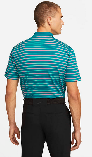 Polokošile Nike Dri-FIT Victory je ušitá z pruhovaného materiálu odvádějícího pot, a díky tomu získává golfová funkčnost moderní šmrnc. 100 % produktu tvoří tkanina z recyklovaných polyesterových vláken.