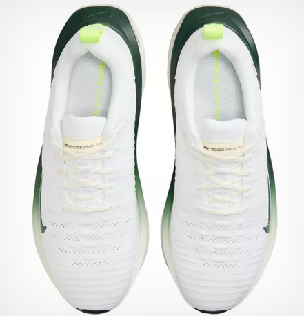 Pánská běžecká obuv Nike InfinityRN 4 s vhodnou oporou i tlumením pro pohodlný běh představuje nové pojetí známého a oblíbeného kousku. Je vyrobený z naší zbrusu nové pěny Nike ReactX, která má ve srovnání s pěnou Nike React o 13% vyšší návratnost energie, takže skvěle pruží a ty zůstaneš svěží. (A co víc? Pěna Nike ReactX snižuje uhlíkovou stopu mezipodešve nejmíň o 43% ve srovnání s pěnou Nike React, takže podporuje i naši planetu.) Pěnu ReactX jsme zkombinovali s materiálem Flyknit, nejlíp padnoucím materiálem od Nike Running, takže s prodyšným svrškem, který zajišťuje bezpečnou oporu a prodyšnost můžeš vyběhnout kdykoli a kdekoli. Jedná se o typ bot, co ti zaručí nedocenitelný klid mysli bez obav o rychlost a vytrvalost – a to díky intuitivnímu designu, který tě podrží na každém kroku. Co je na modelu InfinityRN 4 nového?Tahle verze Infinity s novou pěnou ReactX poskytuje větší oporu pro měkký a plynulý krok. Vylepšený svršek Flyknit a širší špička zvyšuje stabilitu nohy a pocit jistoty. Tlumení: mimořádně silnéČím víc tlumení pod chodidlem, tím měkčí a pohodlnější běhání. Tlumení změkčuje nárazy při došlapu. Pěna ReactX se stará o plynulý krok, takže můžeš překonat vlastní hranice. Opora: silnáČím větší opora boty, tím větší stabilita pro tvůj přirozený došlap. Kombinace vyladěné opory a cíleně umístěného tlumení ti dodá pocit bezpečí na každém kroku. Zaoblená podrážka pomáhá s hladkým přechodem z paty na špičku a s odrazem po došlap. Díky tomu je každý krok přirozenější a zvyšuje efektivitu běhu, takže při něm nebudeš plýtvat energií. Nový vnitřní pás Flyknit sedí (jako gumový pás přes prostředek chodidla), je pružný a pevně obepíná nohu. Citlivost: středníČím citlivější je bota, tím víc energie se ti vrací na každém kroku. Ať už chceš běžet o něco rychleji, nebo s menším úsilím, díky citlivé botě budeš mít při došlapu trochu víc pružnosti, takže z běhu vytěžíš víc. Pěna ReactX, která poskytuje ve srovnání s pěnou React minimálně 13% návratnost energie, při běhu skvěle pruží, takže zůstaneš svěží. Stabilita a prodyšnostVodoodpudivá podšívka ve špičce tě udrží v suchu, když se zhorší počasí. Další výhodyPodrážka s mřížkovaným vzorem je odolná a neklouže.Jazyk z materiálu Flyknit je nastavitelný a hebký.Pěnový lem je měkký na omak a dobře fixuje nohu.Silnější gumová podrážka je odolná a dobře zabírá.