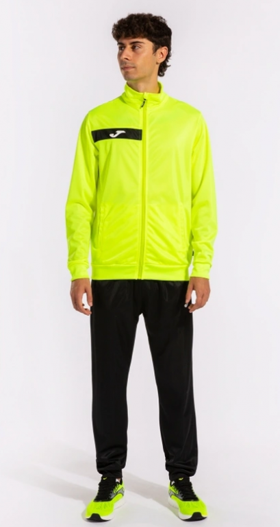 Dvoudílná tepláková souprava skládající se z bundy a kalhot. Bunda má vysoký límec, s kapsami bez zipu a obsahuje žebrování na rukávech a spodním lemu. Dlouhé kalhoty mají nastavitelnou gumu v pase pomocí ploché vnitřní šňůrky. Mají boční kapsy bez zipu a žebrované manžety ve spodní části. Materiál 100 % polyester.