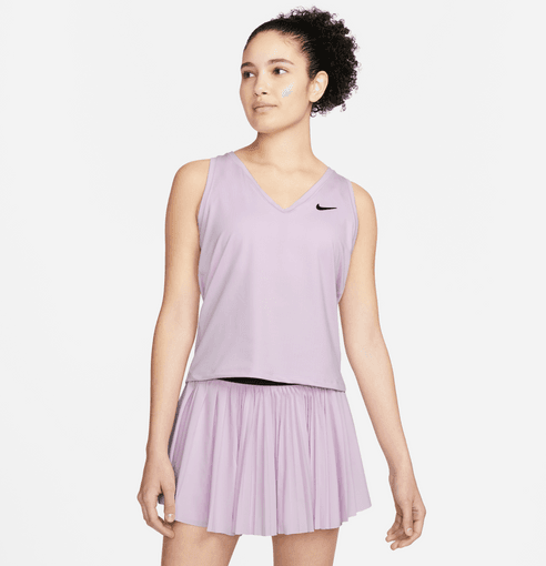 POHODLNÉ PODÁNÍ.Tílko NikeCourt Victory je měkký a pružný kousek na kurt, který odvádí pot, takže se v něm můžeš lépe soustředit na zápas. Alespoň 75 % produktu tvoří tkanina z recyklovaných polyesterových vláken. Materiál s technologií Dri-FIT odvádí pot a příjemně se nosí.Úpletový materiál je prodyšný pružný a mimořádně měkký.Zaoblený lem brání shrnování, když běháš po kurtu.Vykrojené díly na zádech zlepšují prodyšnost v oblasti, která se nejvíc zahřívá. 89% POLYESTER 11% ELASTAN