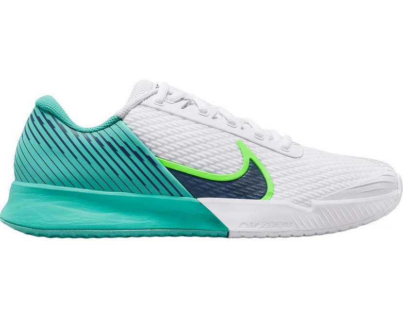 Vapor Pro 2 můžeš nazout na rychlé a neúprosné souboje i na ty nekonečné, které ale vždy skončí ve tvůj prospěch. Znovu přinášíme všechny prvky, které se ti líbily na původním designu Pro: nízké provedení blízko zemi a pružné tlumení Zoom Air. Díky němu přeběhneš od čáry k čáře v pohodlí, jaké v řadě Vapor čekáš, a zůstaneš svěží i na nelítostných površích. Nízká bota pro rychlý pohyb Provedení je nižší než u předchozí verze. Bota je tak neuvěřitelně lehká, takže tě neomezuje při rychlých pohybech. Jdi na to Jednotka Zoom Air v přední části boty pruží od prvního kroku a pomůže ti dostat se k vítěznému forhendu u základní čáry nebo k síti rychle jako blesk. Tlumená mezipodešev zajišťuje oporu a nepřidává zbytečnou hmotnost navíc. Lehká, prodyšná a odolná Odolná a zesílená síťovina pomáhá udržet nohy svěží a dodává jim extra oporu. Další výhody Vnitřní pružná vložka příjemně obepíná nohu.Podrážka se stromečkovým vzorem je vytvořená na základě přesných dat, a má tak optimální přilnavost, ale zároveň ti nebrání ve skluzech.V méně namáhaných zónách jsme zase gumu ubrali, aby byla podrážka co nejlehčí.Skelet po celé délce boty na vnější straně boty stabilizuje nohu při rychlých změnách směru.