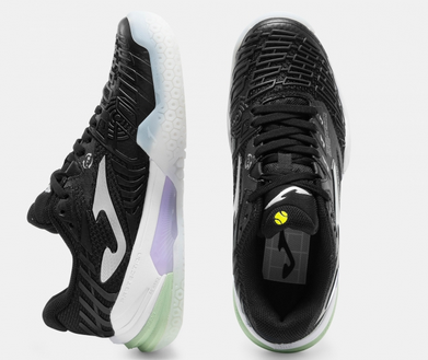 Dámská tenisová obuv Joma T.Roland. Vyvinuta pro dosažení maximálního výkonu v profesionálním tenise. Tento model byl testován profesionálními tenisty, kteří osobně vyzkoušeli jeho vysoký výkon a špičkové technologie. Lehký a prodyšný svršek vyrobený z síťoviny s žakárovou úpravou. Perforace VTS zajišťuje potřebné odvětrávání potu. Termotěsný systém nastavení JOMA SPORTECH, který přizpůsobí obuv noze bez zvýšení hmotnosti. Gumová výztuha PROTECTION na špičce chránící tuto oblast a prodlužující její životnost. Mezipodešev DUAL REACTIVE. Phylon s dvojí hustotou kombinuje odpružení, odezvu a pohodlí, v některých oblastech ještě výraznější, což zvyšuje ochranu. Je vybavena dílem STABILIS v mezipodešvi, který zabraňuje možným zraněním a získává stabilitu. Gumová podrážka DURABILITY na antuku. Poskytuje potřebnou přilnavost na kluzkém povrchu, protože z podrážky vyhání písek, ale umožňuje hladký skluz po dráze bez potíží. Design VTS s prodyšnou síťovinou.Konstrukce SPORTECH s tepelně utěsněným systémem nastavení.Konstrukce PROTECTION s gumovými výztuhami na strategických místech.Mezipodešev s dvojitým phylonem DUAL REACTIVE a STABILIS.DURABILITY gumová podrážka.Vyztužení PROTECTION.