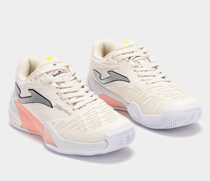 Dámská tenisová obuv Joma je navržena pro maximální výkon na profesionální úrovni. Tento model byl testován profesionálními hráči, kteří ocenili jeho vysoký výkon a špičkové technologie. Ideální volba pro hráče, kteří hledají lehkou, odolnou a stabilní obuv. Svršek je vyroben z lehké a prodyšné síťoviny s úpravou Jacquard, která je doplněna perforacemi VTS pro ventilaci a odvod potu. Díky systému SPORTECH, který tepelně zatavuje úpravy bez přidání hmotnosti, se obuv dokonale přizpůsobí noze. Pro větší odolnost je oblast špičky chráněna pryžovou výztuží Rubber PROTECTION, která prodlužuje životnost obuvi. DUAL REACTIVE mezipodešev využívá dvouhustotní phylon, který kombinuje tlumení, pružnost a pohodlí. Díky STABILIS prvku v oblasti střední části chodidla poskytuje lepší stabilitu a pomáhá předcházet zraněním. Podrážka DURABILITY s hroty nebo designem na antuku poskytuje potřebnou přilnavost na kluzkém povrchu, odvádí písek ze vzoru podrážky a umožňuje plynulé klouzání na kurtu. Lehkost a prodyšnost: Síťovina s Jacquard úpravou a perforacemi VTS.Přizpůsobení a ochrana: Systém SPORTECH a pryžová ochrana Rubber PROTECTION.Tlumení a stabilita: Mezipodešev DUAL REACTIVE a STABILIS prvek pro prevenci zranění.Odolná podrážka: DURABILITY podešev zajišťuje přilnavost a snadné klouzání na antuce.