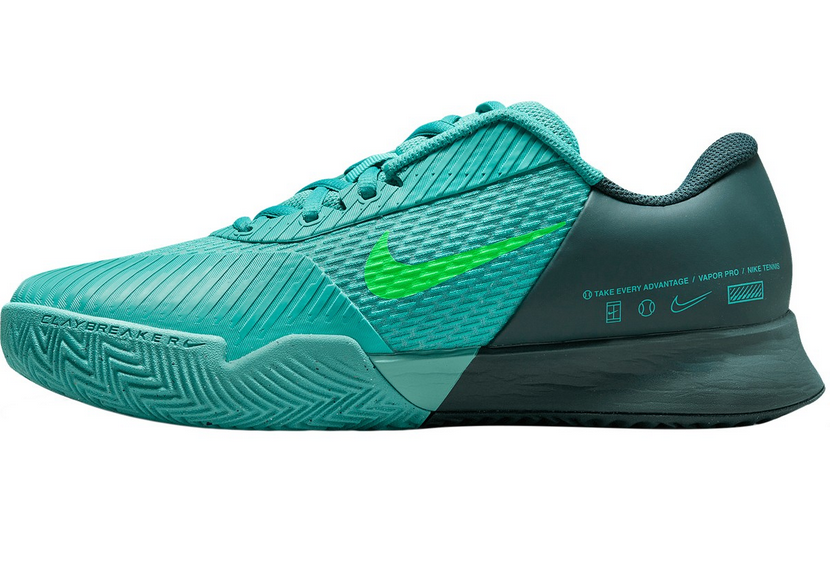 Vapor Pro 2 můžeš nazout na rychlé a neúprosné souboje i na ty nekonečné, které ale vždy skončí ve tvůj prospěch. Znovu přinášíme všechny prvky, které se ti líbily na původním designu Pro: nízkoprofilové provedení a pružnou jednotku Zoom Air, díky které přeběhneš od čáry k čáře v pohodlí, jaké od řady Vapor očekáváš, a budeš v pohodě i na nelítostných površích. Tyto vychytávky a inovativní technologie usnadňující pohyb na antuce se ti postarají o stabilní rychlost na kurtu. Připravené na antuku Technologie Nike Claybreaker na antukových kurtech lépe zabírá a nevytváří velké nánosy antuky. Díky přilnavosti pod špičkou a ve střední části boty a širokému, trakčnímu vzorku máš skluzy pod kontrolou. Na design jsme se inspirovali trakčními a tlakovými mapami a analyzovali jsme místa s největšími nánosy antuky. Pak jsme ho testovali na antukových kurtech v Evropě za různých povětrnostních podmínek (chlad, teplo, vlhko a sucho). Nízké provedení pro rychlejší hru Tohle provedení je nižší a bota je tak neuvěřitelně lehká a umožní ti rychlé, výbušné pohyby a změny směru. Jdi na to Jednotka Zoom Air v přední části boty pruží od prvního kroku a pomůže ti dostat se k míčku u základní čáry nebo k síti rychle jako blesk. Tlumená mezipodešev zajišťuje oporu a nepřidává zbytečnou hmotnost navíc. Navíc má vnitřní pružnou vložku, která zase příjemně obepíná nohu. Lehká a prodyšná Odolná a zesílená síťovina pomáhá udržet nohy svěží a dodává jim extra oporu. Další výhody Podrážka se stromečkovým vzorem je vytvořená na základě přesných dat, a má tak optimální přilnavost, ale zároveň ti nebrání ve skluzech.V méně namáhaných zónách jsme zase gumu ubrali, aby byla podrážka co nejlehčí.