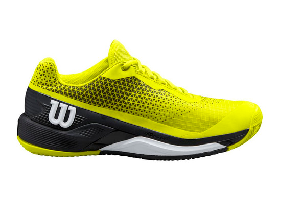 Tenisová obuv Wilson Rush Pro 4.0 Clay kombinuje ohromující styl s ohromujícím výkonem. 4D Support Chassis 2.0 evoluce konstrukce podrážky Rush Pro 3.5, která je rozdělenana dva díly pro dvojí účel: jeden díl se nachází pod chodidlem pro lepší podporu a pohyb vpřed, zatímco druhý je určený pro větší stabilitu a kontrolu. V přední části mezipodešve obsahuje Energy Cell lehkou pěnu EVA která je navržena tak, aby optimalizovala přenos tělesné hmotnosti při nárazu pro výbušnější pohyn. Další technologie Energy Surge obsahuje lehkou pěnu EVA v přední části mezipodešve, která vytváří měkký pocit a optimální přenos tělesné hmotnosti pro výbušné zrychlení. Sensifeel 2.0 má minimálně vrstvený svršek s navrženou síťovinou pro lepší prodyšnost, pocit a pohodlí. Endofit poskytuje zvýšený komfort, stabilitu a intuitivní přizpůsobení díky kompletní vnitřní konstrukci ponožky. DF2 poskytuje tlumený pocit na kurtu a přináší kompromis mezi pohodlím a rychlým výkonem (DF2 = HT Drop 9 mm). R-DST+ nabízí nejlepší kombinaci tlumení a odrazu pro dynamičtější výkon. Duralast se skládá z vysoce hutné, dokonale odolné pryžové směsi, která poskytuje odolnost proti oděru a maximální trakci na všech površích. Obuv disponuje speciální CLAY podrážkou pro antuku.