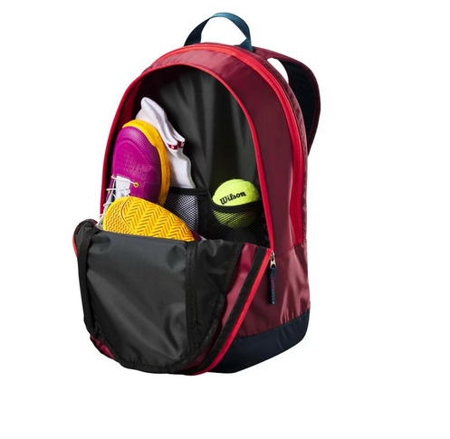 Ideální kompaktní taška, do které se vejde vše, co potřebují juniorští hráči mířící na kurty. Juniorský batoh, který je skvělou volbou pro děti na kole nebo při dojíždění, má dvě hlavní přihrádky: do jedné lze uložit až dvě tenisové rakety plné velikosti a do druhé se vejde vše ostatní. Polstrované ramenní popruhy poskytují dodatečné pohodlí na cestě na kurty a poutko na popruhu usnadňuje zavěšení, kdykoli skončí trénink. Rozměry: 26,5 x 4 x 12" / 67,5 x 10 x 30,5 cmMateriál: 100% polyesterKapacita rakety: 2Kapsa na 2 rakety plné velikosti.Hlavní přihrádka: Obsahuje vnitřní síťované kapsy, do kterých lze uložit osobní věci, jako je oblečení, míčky a další vybavení.Polstrované nastavitelné popruhy.Poutko z popruhu na zavěšení.