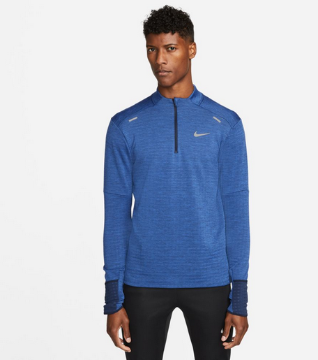 HŘEJIVÁ A VODOODPUDIVÁ STŘEDNÍ VRSTVA.Déšť tě při běhu nezastaví. Top Nike Therma-FIT Repel je z měkkého a hřejivého materiálu, který obsahuje nejméně 75 % recyklovaných polyesterových vláken. Má vodoodpudivé vlastnosti, takže budeš v pohodlí i za deštivého počasí. Polovičním zipem si můžeš upravovat větrání a manžety s otvory na palce ti zahřejí ruce hned na tři způsoby. Lehký a univerzální design umožňuje nosit tenhle kousek jako prostřední nebo jedinou vrstvu. Technologie Nike Therma-FIT reguluje tělesné teplo a v chladném počasí tě příjemně zahřeje. Na tomhle topu jsme ji zkombinovali s měkkým a lehkým francouzským froté s vodoodpudivými vlastnostmi, takže zůstaneš v suchu, i když prší.Díky otvorům na palce si prodloužíš rukávy a zahřeješ ruce. Střih se při nošení přizpůsobí tvaru tvojí ruky. Zakončení rukávu se dá nosit na tři způsoby: jako rukavice, s využitím otvoru na palec nebo ohrnuté do manžety.Polovičním zipem si nastavíš větrání a zakrytí krku. Nový tvarovaný límec má míň švů než předchozí verze, takže nikde netlačí. 94% POLYESTER 6% ELASTAN
