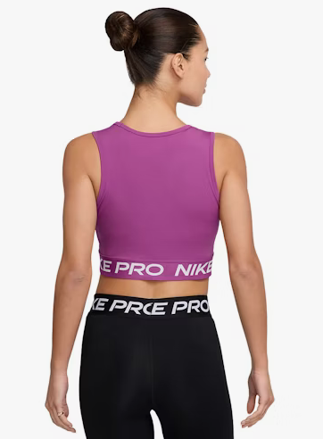 Dámské zkrácené tílko Nike Pro je vyrobené z lehkého, pružného a hladkého materiálu, který rychle schne, takže tě při intenzivním tréninku nic nezaskočí. Přiléhavý střih a měkký elastický žakárový pásek na lemu tě podrží, když překonáváš svoje cíle. Alespoň 75% produktu tvoří tkanina z recyklovaných vláken. Profesionální stylNekompromisní a sebevědomý styl se hodí ke všemu. Nike Pro doplní tvůj šatník o kousky, díky kterým vynikneš, ať už to budou legíny, nebo topy. Zůstaň v suchuTechnologie Nike Dri-FIT odvádí pot od kůže na povrch látky, kde se rychle odpaří. Zůstaneš proto v suchu a pohodlí. Materiál: hlavní část: 83% polyester, 17% elastan; pas: 63% nylon, 21% polyester, 16% elastan