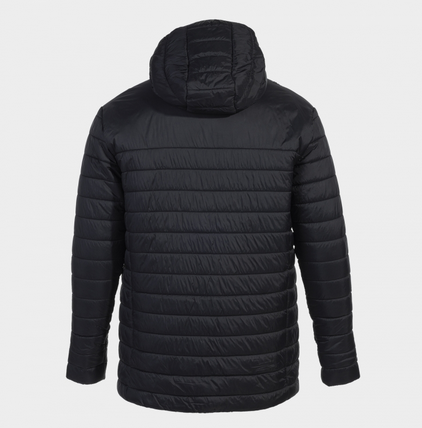 Pánská zimní bunda. Model pro trénink a každodenní použití. Kapuce s elastickým páskem kolem usnadňující nastavení. Obsahuje také zapínání na zip a tahač, dvě vnější kapsy s neviditelnými zipy a elastické manžety a lem. Bezpečné kapsy jsou ideální pro uložení drobných osobních věcí. Tato bunda je vyrobena z velmi lehké prošívané látky, která udržuje stálou tělesnou teplotu a poskytuje sportovci pohodlí. Jeho objem poskytuje teplo, aniž by přidával další váhu. Pro větší pohodlí je bunda vybavena ochrannou krycí páskou na bradě, která zabraňuje tření nebo podráždění. Vyšívané logo Joma.Materiál 100 % polyester.