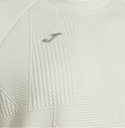 Střih zahrnuje kulatý výstřih a žebrované detaily na krku, manžetách a lemu, které zajišťují bezpečné a pohodlné nošení.