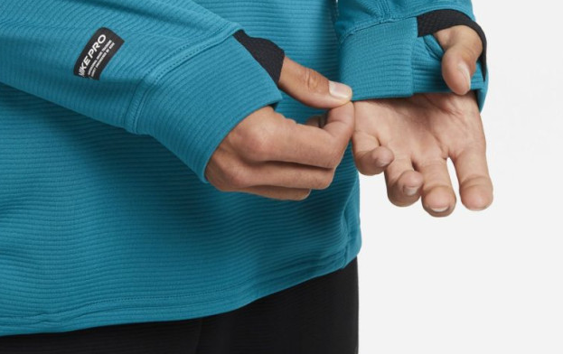 HŘEJIVÉ A PRODYŠNÉ POHODLÍ.Flísová mikina Nike Pro s kapucí vyvažuje hřejivost svou prodyšností, aby ti v ní bylo tak akorát, když cvičíš nebo soutěžíš v chladnějších podmínkách. Inovativní kapsa je navržená tak, aby ti uvolnila ruce, protože v ní budou tvoje drobnosti v bezpečí i během náročných aktivit. Odborníci Nike navrhli pleteninový design se střídajícími se proužky extrémně jemného a zároveň robustního francouzského froté a tenčí prodyšné tkaniny. Hřeje a zároveň uvolňuje přebytečné teplo a pomáhá ti tak vyhnout se přehřívání.Pružný design a asymetrické boční rozparky zlepšují rozsah pohybu, takže se můžeš volně hýbat. Otvory pro palce na manžetách ti ochrání ruce před zimou, protože udrží při pohybu rukávy na místě.Látka navíc zevnitř kryje vstupy předních kapes a vytváří tak bariéru, která chrání tvoje drobnosti před vypadnutím při rychlých pohybech.Stahovací šňůrkou s brzdičkou si upravíš velikost i hloubku kapuce, aby ti kolem ní neprofukovalo.„Lichoběžníkově" žebrovaná páska zpevňuje kapuci, která pořád zůstává dostatečně flexibilní. 100% POLYESTER