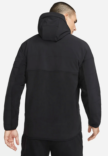Nike Therma-FIT V pánské zimní tréninkové mikině s kapucí Nike Therma-FIT můžeš pozvednout svoje venkovní cvičení na novou úroveň. Je vyrobená z měkkého flísu a vrchní část tvoří hladká vodoodpudivá shellka, takže tě udrží v teple a suchu i počasí navzdory. Horní polovina a rukávy jsou ušité z hladké a pružné tkaniny, která odpuzuje vodu a pomáhá ti zůstat v suchu. Měkký flís s technologií Nike Therma-FIT využívá tvoje tělesné teplo a v chladném počasí tě příjemně zahřeje. Přední skryté kapsy na zip ochrání tvoje věci před živly. Standardní střih působí ležérně a uvolněně. Prodloužený zadní lem. Materiál: 100% polyester; krycí vrstvy: 81% polyester, 19% elastan