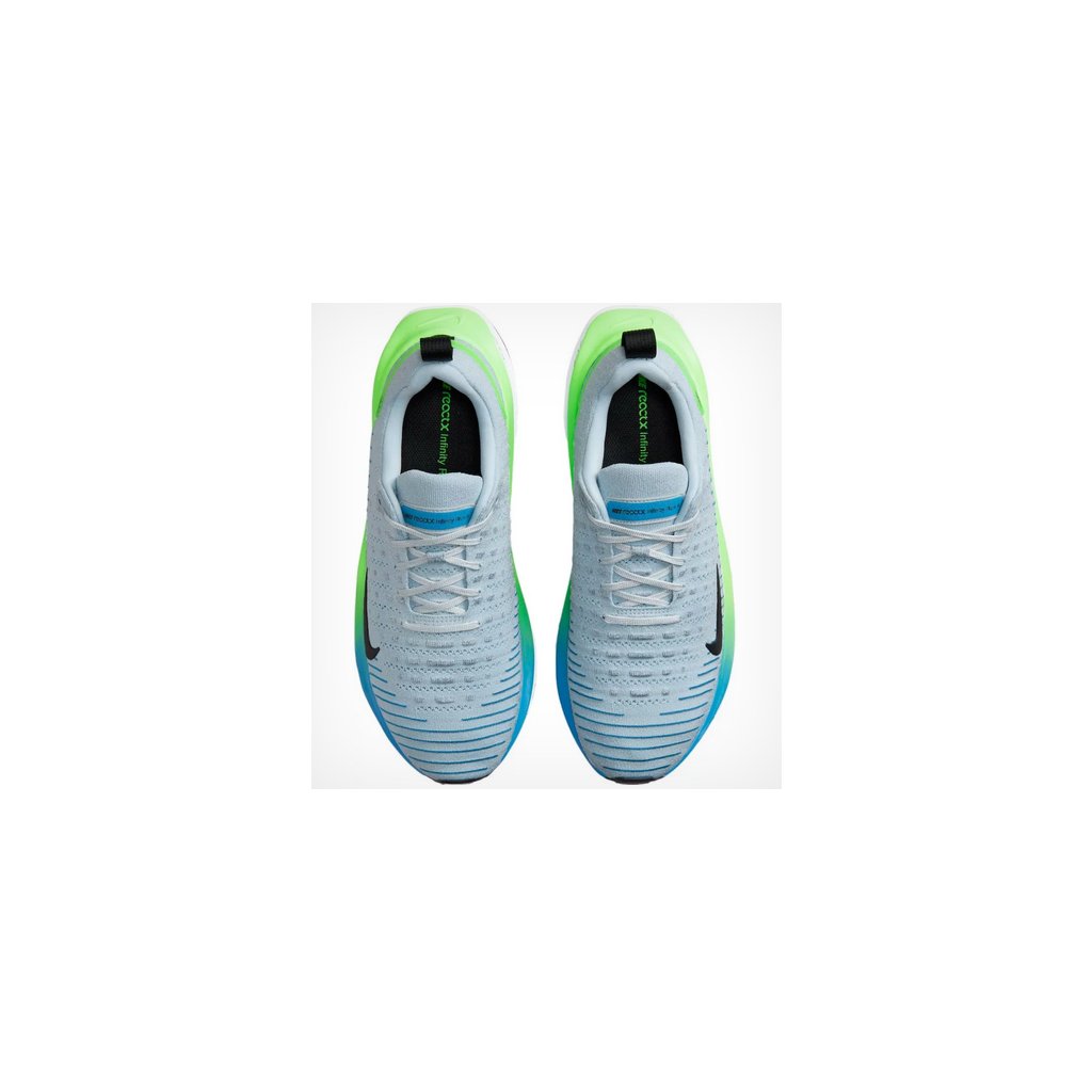 Pánská běžecká obuv Nike InfinityRN 4 s vhodnou oporou i tlumením pro pohodlný běh představuje nové pojetí známého a oblíbeného kousku. Je vyrobený z naší zbrusu nové pěny Nike ReactX, která má ve srovnání s pěnou Nike React o 13% vyšší návratnost energie, takže skvěle pruží a ty zůstaneš svěží. (A co víc? Pěna Nike ReactX snižuje uhlíkovou stopu mezipodešve nejmíň o 43% ve srovnání s pěnou Nike React, takže podporuje i naši planetu.) Pěnu ReactX jsme zkombinovali s materiálem Flyknit, nejlíp padnoucím materiálem od Nike Running, takže s prodyšným svrškem, který zajišťuje bezpečnou oporu a prodyšnost můžeš vyběhnout kdykoli a kdekoli. Jedná se o typ bot, co ti zaručí nedocenitelný klid mysli bez obav o rychlost a vytrvalost – a to díky intuitivnímu designu, který tě podrží na každém kroku. Co je na modelu InfinityRN 4 nového?Tahle verze Infinity s novou pěnou ReactX poskytuje větší oporu pro měkký a plynulý krok. Vylepšený svršek Flyknit a širší špička zvyšuje stabilitu nohy a pocit jistoty. Tlumení: mimořádně silnéČím víc tlumení pod chodidlem, tím měkčí a pohodlnější běhání. Tlumení změkčuje nárazy při došlapu. Pěna ReactX se stará o plynulý krok, takže můžeš překonat vlastní hranice. Opora: silnáČím větší opora boty, tím větší stabilita pro tvůj přirozený došlap. Kombinace vyladěné opory a cíleně umístěného tlumení ti dodá pocit bezpečí na každém kroku. Zaoblená podrážka pomáhá s hladkým přechodem z paty na špičku a s odrazem po došlap. Díky tomu je každý krok přirozenější a zvyšuje efektivitu běhu, takže při něm nebudeš plýtvat energií. Nový vnitřní pás Flyknit sedí (jako gumový pás přes prostředek chodidla), je pružný a pevně obepíná nohu. Citlivost: středníČím citlivější je bota, tím víc energie se ti vrací na každém kroku. Ať už chceš běžet o něco rychleji, nebo s menším úsilím, díky citlivé botě budeš mít při došlapu trochu víc pružnosti, takže z běhu vytěžíš víc. Pěna ReactX, která poskytuje ve srovnání s pěnou React minimálně 13% návratnost energie, při běhu skvěle pruží, takže zůstaneš svěží. Stabilita a prodyšnostVodoodpudivá podšívka ve špičce tě udrží v suchu, když se zhorší počasí. Další výhodyPodrážka s mřížkovaným vzorem je odolná a neklouže.Jazyk z materiálu Flyknit je nastavitelný a hebký.Pěnový lem je měkký na omak a dobře fixuje nohu.Silnější gumová podrážka je odolná a dobře zabírá.