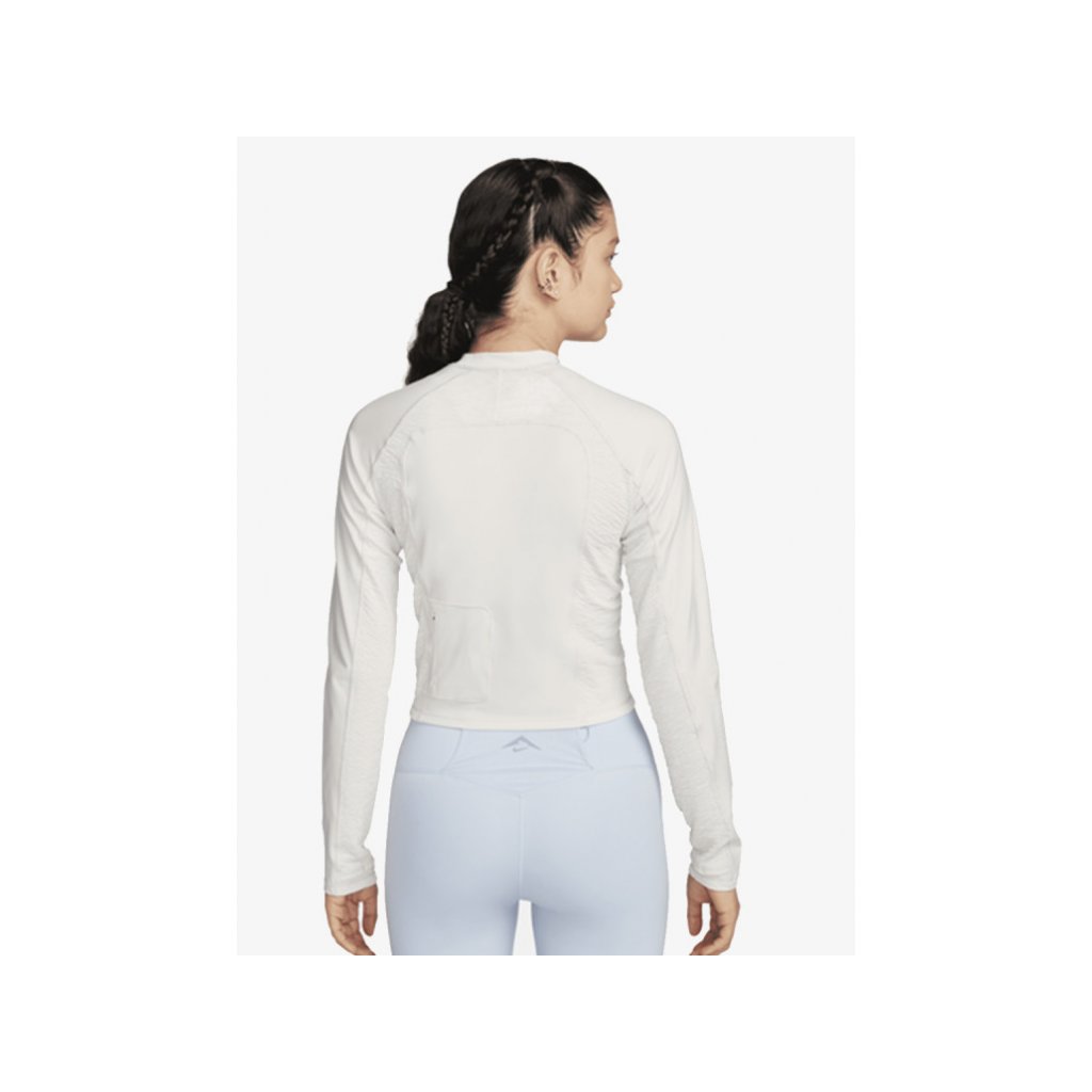 V tomhle topu Nike Trail se můžeš napojit na okolí, když se vydáš do dobrodružného zalesněného terénu. Dámské běžecké tričko s dlouhým rukávem Nike Trail je neodolatelně hladké a mimořádně pružné, takže tě dokonale obepne. Technologie odvádějící pot tě udrží v suchu a pohodlí. Do zadní kapsy na zip si můžeš schovat drobnosti a otvory na palce drží rukávy na místě. Neutrální odstíny a texturované díly jsou navržené s ohledem na udržitelnost a oslavují přírodu, takže se v nich můžeš vydat ještě dál. Technologie Nike Dri-FIT odvádí pot od kůže na povrch látky, kde se rychle odpaří. Zůstaneš proto v suchu a pohodlí. Otvory pro palce na manžetách ochrání ruce před zimou a při pohybu drží rukávy na místě. Vzadu je kapsa na zip, ve které budeš mít svoje drobnosti v bezpečí. Reflexní text ti dodá lesk. Zeštíhlený střih.