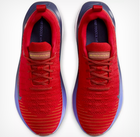 Pánská běžecká obuv Nike InfinityRN 4 s vhodnou oporou i tlumením pro pohodlný běh představuje nové pojetí známého a oblíbeného kousku. Je vyrobený z naší zbrusu nové pěny Nike ReactX, která má ve srovnání s pěnou Nike React o 13% vyšší návratnost energie, takže skvěle pruží a ty zůstaneš svěží. (A co víc? Pěna Nike ReactX snižuje uhlíkovou stopu mezipodešve nejmíň o 43% ve srovnání s pěnou Nike React, takže podporuje i naši planetu.) Pěnu ReactX jsme zkombinovali s materiálem Flyknit, nejlíp padnoucím materiálem od Nike Running, takže s prodyšným svrškem, který zajišťuje bezpečnou oporu a prodyšnost můžeš vyběhnout kdykoli a kdekoli. Jedná se o typ bot, co ti zaručí nedocenitelný klid mysli bez obav o rychlost a vytrvalost – a to díky intuitivnímu designu, který tě podrží na každém kroku. Co je na modelu InfinityRN 4 nového?Tahle verze Infinity s novou pěnou ReactX poskytuje větší oporu pro měkký a plynulý krok. Vylepšený svršek Flyknit a širší špička zvyšuje stabilitu nohy a pocit jistoty. Tlumení: mimořádně silnéČím víc tlumení pod chodidlem, tím měkčí a pohodlnější běhání. Tlumení změkčuje nárazy při došlapu. Pěna ReactX se stará o plynulý krok, takže můžeš překonat vlastní hranice. Opora: silnáČím větší opora boty, tím větší stabilita pro tvůj přirozený došlap. Kombinace vyladěné opory a cíleně umístěného tlumení ti dodá pocit bezpečí na každém kroku. Zaoblená podrážka pomáhá s hladkým přechodem z paty na špičku a s odrazem po došlap. Díky tomu je každý krok přirozenější a zvyšuje efektivitu běhu, takže při něm nebudeš plýtvat energií. Nový vnitřní pás Flyknit sedí (jako gumový pás přes prostředek chodidla), je pružný a pevně obepíná nohu. Citlivost: středníČím citlivější je bota, tím víc energie se ti vrací na každém kroku. Ať už chceš běžet o něco rychleji, nebo s menším úsilím, díky citlivé botě budeš mít při došlapu trochu víc pružnosti, takže z běhu vytěžíš víc. Pěna ReactX, která poskytuje ve srovnání s pěnou React minimálně 13% návratnost energie, při běhu skvěle pruží, takže zůstaneš svěží. Stabilita a prodyšnostVodoodpudivá podšívka ve špičce tě udrží v suchu, když se zhorší počasí. Další výhodyPodrážka s mřížkovaným vzorem je odolná a neklouže.Jazyk z materiálu Flyknit je nastavitelný a hebký.Pěnový lem je měkký na omak a dobře fixuje nohu.Silnější gumová podrážka je odolná a dobře zabírá.