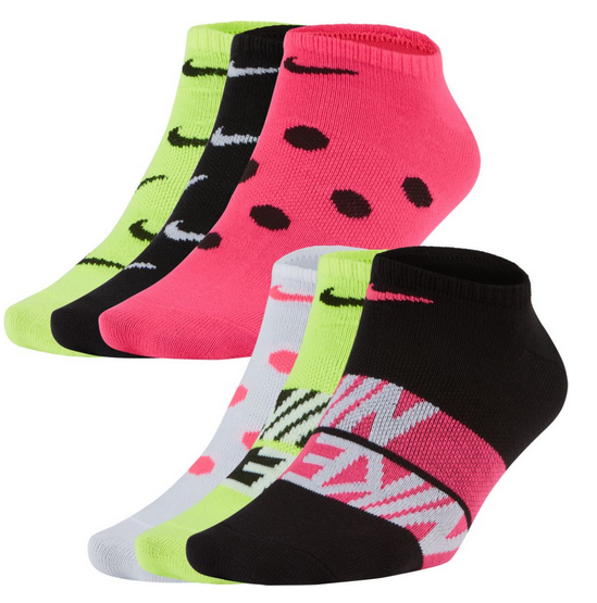 Dámské ponožky,6 párů v balení.Opři se do svých tréninků naplno v ponožkách Nike Everyday Cushioned. Zesílené chodidlo je při cvičeních na nohy a posilování mimořádně pohodlné a žebrovaný pás přes nárt obepíná a zpevňuje klenbu. Technologie Dri-FIT odvádí pot a udržuje nohy v suchu a pohodlí.Zesílené chodidlo zvyšuje pohodlí a odolnost.Žebrovaný pás v oblasti klenby příjemně sedne a nohu zpevňuje. Materiál 92 % polyester,8 % elastan.