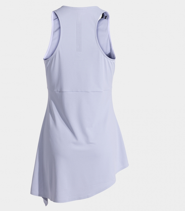Tenisové a padelové šaty. Technický model s vnitřními elastickými kraťasy poskytující větší krytí a pohodlí při hře. Design s průsvitnou spodní částí umožňuje snadnější pohyb a stylizuje jej. Má kulatý výstřih a vestavěný top udržující hrudník pro pohodlí. Odstranění horních košíčků. Vyrobeno z lehké, prodyšné a elastické tkaniny, která se přizpůsobí tělu sportovce. UV +30 ochrana proti slunci ve světlých barvách. Kromě toho jsou na hrudi přidány laserem řezané perforace, které nabízejí vynikající ventilaci potu. Obsahuje vnitřní síťovinu s elastickým pasem a ploché švy FLATLOCK na citlivých místech zabraňující odírání.Materiál 90% Polyester, 10% Spandex.