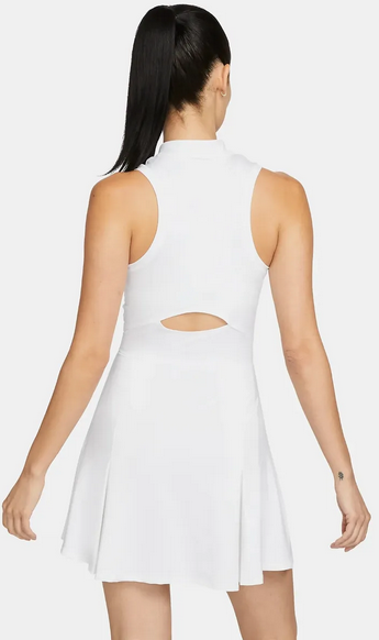 PROPRACOVANÝ STYL.Přidej svému stylu na zápas špetku sofistikovanosti v tomhle tenisovém dresu, který kombinuje výstřih do V a rolákový límec. Tenhle lehký design je neuvěřitelně měkký a je vyrobený z mimořádně pružného materiálu, takže se můžeš pohybovat v naprostém pohodlí na hřišti i mimo něj. Součástí šatů nejsou kraťasy na uložení míčku, takže si můžeš outfit doplnit podle svého. Alespoň 75 % produktu tvoří tkanina z recyklovaných polyesterových vláken. Technologie Nike Dri-FIT odvádí pot od kůže na povrch látky, kde se rychle odpaří. Zůstaneš proto v suchu a pohodlí.Vykrojený zadní díl je prodyšnější.Plisovaná zadní část příjemně splývá a při běhu povlává. 88% POLYESTER 12% ELASTAN