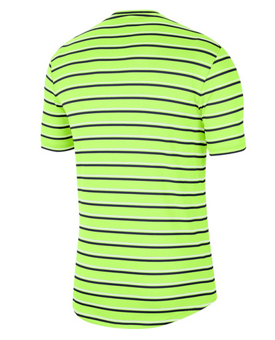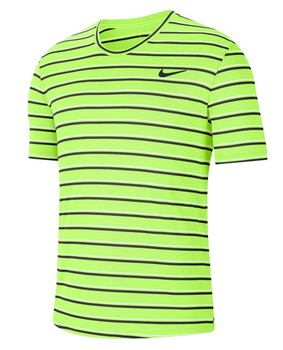 PRUHOVANÁ A PŘIPRAVENÁ NA SMEČ.Top NikeCourt Dri-FIT, zrozený v Paříži a vyrobený v Nike, perfektně kombinuje styl a výkon. Pruhy ožívají na lehkém, prodyšném materiálu pro pocit sucha a pohodlí na hřišti. Lehká tkanina s technologií Dri-FIT odvádí pot od pokožky a udržuje tě v suchu a pohodlí.Pruhy jsou inspirované pařížským pouličním stylem, který je sportovní a zároveň formální. Pruhy jsou střídavé řady s prodyšným žebrováním s řady s pružným žerzejovým materiálem.Klínky v podpaží zlepšují obratnost při pohybu. Ramenní švy jsou posunuté dozadu, takže ti nebudou překážet při úderech přes hlavu. 100% POLYESTER