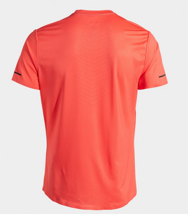 Pánské tričko s krátkým rukávem. Jedná se o super pohodlné technické tričko, ideální pro trénink a hraní raketových sportů, jako je padel. S plochami pro ventilaci potu pro dosažení vyšší úrovně pohodlí. Výborná volnost pohybu. Začleněný kulatý výstřih z elastické základní látky a vnitřní krycí páska pro omezení tření v oblasti. Švy na ramenou, rukávech a lemu jsou tepelně utěsněny, aby byla zachována lehkost a předcházelo se nepohodlí způsobenému třením. Vyrobeno z lehké, odolné a prodyšné tkaniny. Perforace VTS byly umístěny v oblastech, kde se nejvíce hromadí vlhkost: střed zad, boky a hrudník. K jejich vkládání byla použita technika řezání laserem. Na jedné straně elastická vlákna poskytují vynikající přizpůsobení a naprostou svobodu pohybu spolu s bočními větracími otvory na lemu, které prodlužují délku kroku. Design trička je 360º reflexní, to znamená s reflexními vzory, které zvyšují viditelnost hráče na všech čtyřech stranách. Logo Joma je vyrobeno z tepelně utěsněného silikonu s technologií JOMA SPORTECH, aniž by přidávalo další váhu a zvyšovalo pohodlí.Materiál 93 % polyester,7 % spandex.