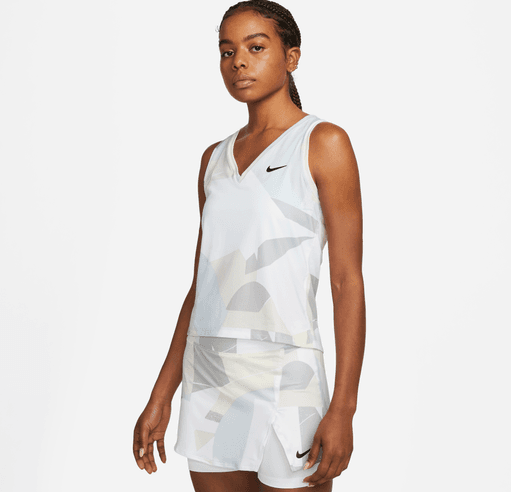Z HŘIŠTĚ. NA HŘIŠTĚ.Když se dobře podíváš, zjistíš, že tenisový kurt nejsou jenom geometrické čáry na zemi. Jedinečný potisk tílka NikeCourt Victory zkoumá abstraktní tvary a linie, které se objevují, když slunce nebo světla reflektorů promění vzhled hřiště. Alespoň 75 % produktu tvoří tkanina z recyklovaných polyesterových vláken. Technologie Nike Dri-FIT odvádí pot od kůže na povrch látky, kde se rychle odpaří. Zůstaneš proto v suchu a pohodlí.Lehký materiál piké je měkký, prodyšný a velmi pružný.Vykrojený díl na zádech zlepšuje prodyšnost v oblasti, která se nejvíc zahřívá. 89% POLYESTER 11% ELASTAN