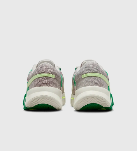 Model GP Challenge 1 je stvořený pro ty nejlepší a pro ty, kteří se jimi chtějí stát, takže dodá jistotu každému tvému úderu i podání. Má jednotky Air Zoom a dobrou stabilitu při bočním pohybu, takže můžeš dát volný průchod svojí vnitřní síle a při zápase to pořádně rozpálit. Jednotka Air Zoom v přední části boty ti pomůže hrát na špičkách a vymrští tě při prvním kroku vpřed. Jednotka Air Zoom v patě poskytuje oporu. Zůstaň v pohybu. Silný plastový plát ve střední části boty zlepšuje stabilitu při rychlých změnách směru a přenos energie z pohybu do pohybu. Pásky kolem podkroužků v kombinaci s podrážkou příjemně obepnou nohu při pohybu do stran. Pata je skvěle polstrovaná, aby ti zajistila pohodlí a oporu. Odolná podrážka. Pro ještě větší odolnost je do oblasti prstů, konkrétně na stranu palce, přidaná guma. V přední části boty je vysoce abrazivní guma, která zlepšuje odolnost a trakci. Pata je speciálně navržená pro pohyby podobné zhoupnutí, jako je například pohyb dozadu při podání.