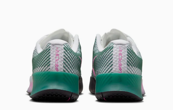 Model Vapor 11 odzkoušený velikány hry je zpátky a lepší než kdy dřív. Je blíž k zemi a plný rychlostních prvků, takže ti umožní hrát v rychlém tempu s dostatečnou oporou na skákání a běhání set za setem. Hlavní části, jako jsou mimořádně osvědčené tvarované boční díly a prodyšný svršek, skvěle ladí s odolným a rychlým designem, který si tak všichni zamilovali. Nízké provedení pro rychlejší hru. Vapor 11 má nižší provedení než předchozí verze. Bota je neuvěřitelně lehká, takže tě nijak neomezuje při výbušných rychlých pohybech ani při náhlých změnách směru. Snadné obouvání. Pohodlným polovičním vnitřním návlekem jsme zjednodušili nazouvání a zouvání. Jednotka Zoom Air v přední části boty pruží od prvního kroku a pomůže ti dostat se k vítěznému úderu u základní čáry nebo k síti rychle jako blesk. Tlumená mezipodešev zajišťuje oporu a nepřidává zbytečnou hmotnost navíc. Podrážka se stromečkovým vzorem je vytvořená na základě přesných dat, a má tak optimální přilnavost, ale zároveň ti nebrání ve skluzech.V méně namáhaných zónách jsme zase gumu ubrali, aby byla podrážka co nejlehčí.Odolná a zesílená síťovina pomáhá udržet nohy svěží a dodává jim extra oporu.Skelet po celé délce boty na vnější straně boty stabilizuje nohu při rychlých změnách směru. Bota je určená na kurty s tvrdým povrchem.