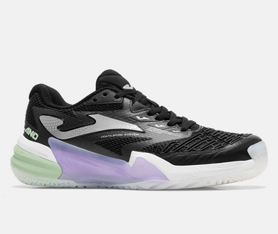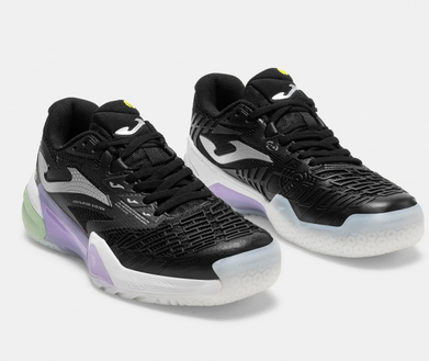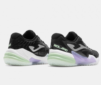 Dámská tenisová obuv Joma T.Roland. Vyvinuta pro dosažení maximálního výkonu v profesionálním tenise. Tento model byl testován profesionálními tenisty, kteří osobně vyzkoušeli jeho vysoký výkon a špičkové technologie. Lehký a prodyšný svršek vyrobený z síťoviny s žakárovou úpravou. Perforace VTS zajišťuje potřebné odvětrávání potu. Termotěsný systém nastavení JOMA SPORTECH, který přizpůsobí obuv noze bez zvýšení hmotnosti. Gumová výztuha PROTECTION na špičce chránící tuto oblast a prodlužující její životnost. Mezipodešev DUAL REACTIVE. Phylon s dvojí hustotou kombinuje odpružení, odezvu a pohodlí, v některých oblastech ještě výraznější, což zvyšuje ochranu. Je vybavena dílem STABILIS v mezipodešvi, který zabraňuje možným zraněním a získává stabilitu. Gumová podrážka DURABILITY na antuku. Poskytuje potřebnou přilnavost na kluzkém povrchu, protože z podrážky vyhání písek, ale umožňuje hladký skluz po dráze bez potíží. Design VTS s prodyšnou síťovinou.Konstrukce SPORTECH s tepelně utěsněným systémem nastavení.Konstrukce PROTECTION s gumovými výztuhami na strategických místech.Mezipodešev s dvojitým phylonem DUAL REACTIVE a STABILIS.DURABILITY gumová podrážka.Vyztužení PROTECTION.