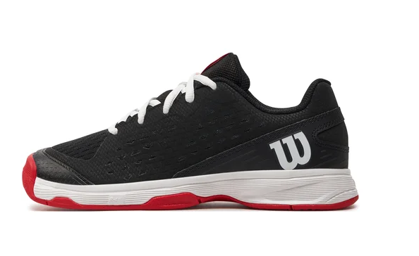 Juniorská chlapecká bota Wilson RUSH PRO JR je ideální pro mladé juniory, kteří potřebují spolehlivou, odolnou a pohodlnou obuv. Bota má kvalitní odpružení R-DST a univerzální, Wilsonem patentovanou, velmi odolnou podrážku DURALAST pro všechny povrchy. Svršek ze syntetiky a textilie zajišťuje vynikající kombinaci vzdušnosti a komfortu.Zvýšená ochrana špičky boty proti odření.Technologie mezipodrážky R-DST zvyšuje tlumení boty pro lepší komfort.