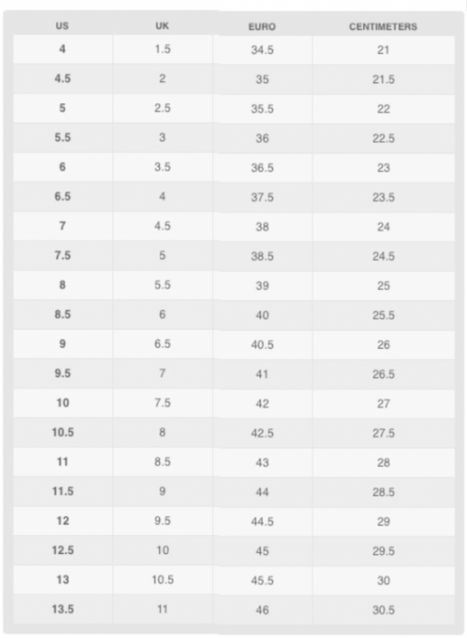 Tabulka velikostí