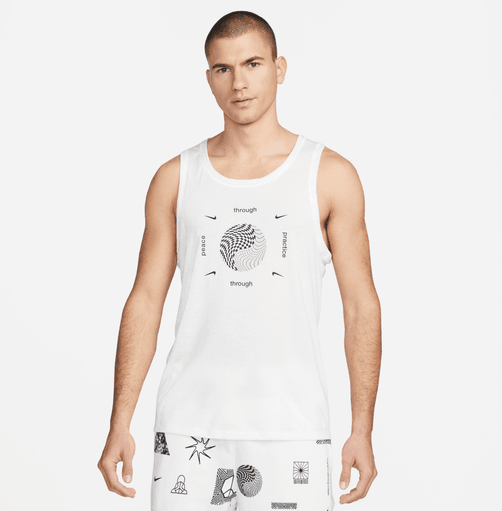 MĚKKÉ POHODLÍ, OHLEDUPLNÝ DESIGN.Tílko Nike Yoga je ušité z mimořádně měkkého materiálu, ve kterém se můžeš při cvičení jógy pohodlně protahovat, ohýbat se a dýchat. Tištěná grafika ti bude připomínat, že máš svoji mysl, tělo a duši udržet v harmonii a najít svůj klid prostřednictvím cvičení. Materiál s technologií Dri-FIT odvádí pot a příjemně se nosí.Extrémně hebké materiály jsou na dotek příjemné.Provedení bez rukávů ti umožní přirozený pohyb bez omezení. 75% POLYESTER 13% BAVLNA 12% HEDVÁBÍ